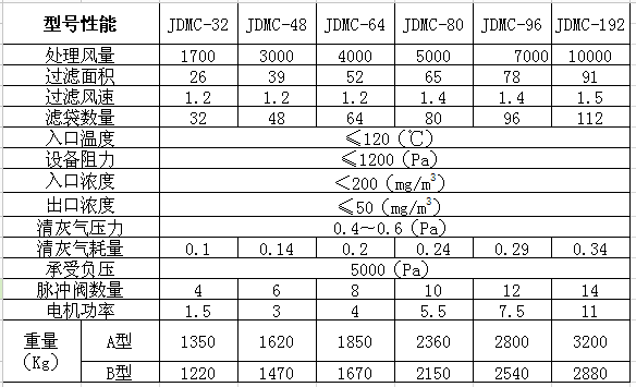 JDMC袋式除塵器 單機(jī)脈沖袋式除塵器采用逐行脈沖噴吹的清灰方式,其結(jié)構(gòu)由過濾室、濾袋、凈氣室、灰斗、卸灰裝置、脈沖噴吹清灰裝置、電控系統(tǒng)組成具有清灰效果好、凈化效率高、濾布壽命長、維修工作量小、運(yùn)行安全可靠等優(yōu)點(diǎn)。廣泛用于冶金、建材、化工、機(jī)械、礦山等各種工礦企業(yè)非纖維工業(yè)粉塵的除塵凈化與物料的回收。 主要特點(diǎn)是: ◆該設(shè)備有體積小,處理風(fēng)量大,結(jié)構(gòu)緊湊,使用方便、安全可靠等優(yōu)點(diǎn)。 ◆用滌淪氈等各種濾料,正常使用溫度<120℃(溫度根據(jù)客戶要求制作)入口含塵濃度<200glNM。出口排放濃度<50mglNM3。 ◆適用于運(yùn)輸機(jī)、提升機(jī)、庫頂、庫底、包裝機(jī)、熟料破碎等處除塵。 ◆采用高壓大流量脈沖閥逐條濾袋噴吹清灰的技術(shù),其它單機(jī)相比,具有清灰動(dòng)能大,清灰效率高的特點(diǎn)。