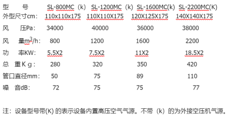 注:設(shè)備型號(hào)帶(K) 的表示設(shè)備內(nèi)置高壓空氣氣源。不帶(k)的為外接空壓機(jī)氣源。